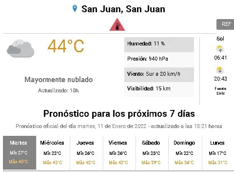 Este martes, San Juan ha sido un verdadero infierno. Es que se superó ampliamente la maxima estimada de 40° llegando a los 44° y poniendo a San Juan como la provincia más calurosa del país.