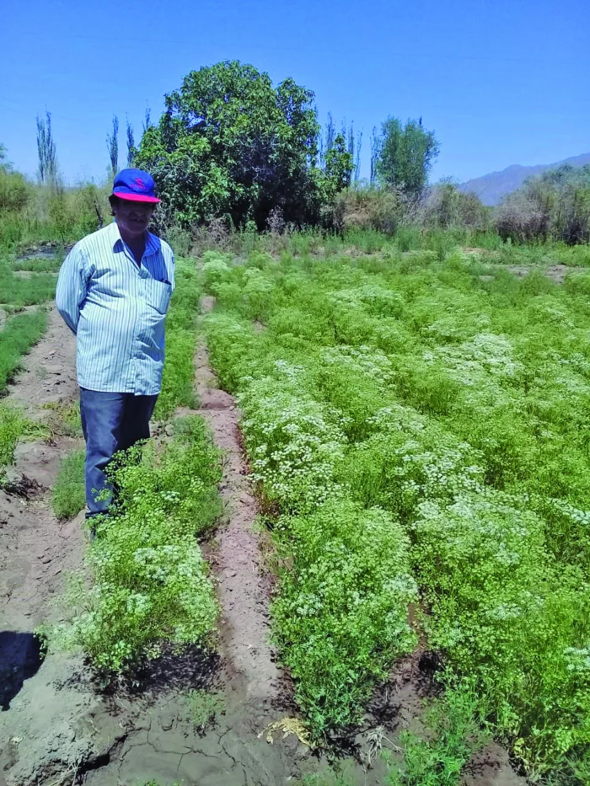 Huaqueños diversifican en el cultivo de aromáticas. La Cooperativa de Productores Agropecuarios de Huaco viene trabajando de la mano del INTA en Jáchal. Durante 2020 lograron buenos rendimientos en comino. Ahora hicieron ensayos en anís y ají picante.