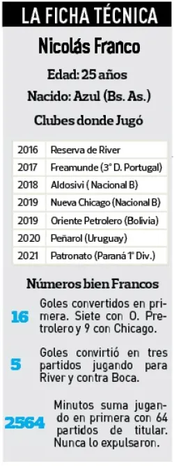 Ayer llegó a la provincia, firmó su contrato por un año con el Verdinegro Nicolás Franco. Es delantero formado en las inferiores de River y fue dirigido por el Luiggi cuando fue entrenador de la Reserva.