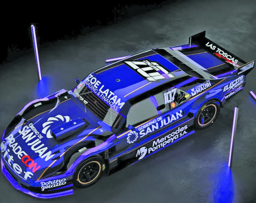 El equipo Las Toscas Racing presentó de manera virtual el auto que conducirá el sanjuanino Tobías Martínez. Un impecable azul marino con vivos negros y violetas. La chevy se lució en las redes.