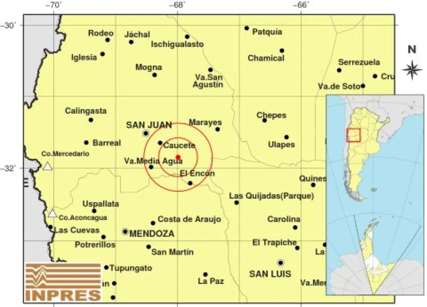 De acuerdo a lo que informó el Instituto Nacional de Prevención Sísmica, el epicentro fue a 62 kilómetros al Sudeste de San Juan y a 139 kilómetros al noreste de Mendoza.