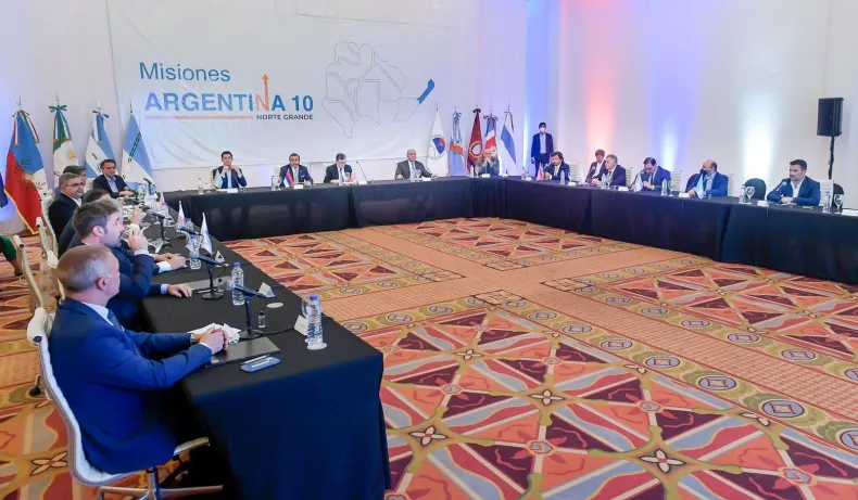 En la primera reunión del año de la Asamblea del Norte Grande participan los gobernadores de Misiones, Oscar Herrera Ahuad; de Santiago del Estero, Gerardo Zamora; de Tucumán, Osvaldo Jaldo; de Formosa, Gildo Insfrán; de Jujuy, Gerardo Morales; de Catamarca, Raúl Jalil; de La Rioja, Ricardo Quintela; de Chaco, Jorge Capitanich; de Corrientes, Gustavo Valdés y de Salta, Gustavo Sáenz, además de los ministros del Interior, Eduado de Pedro; de Obras Públicas, Gabriel Katopodis y de Transporte, Alexis Guerrera.