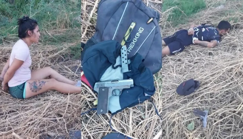 Un intenso movimiento policial se vivió la tarde de este sábado para detener a una joven pareja que entró a robar a una finca en Pocito y hasta efectuaron disparos mientras cometían el delito.