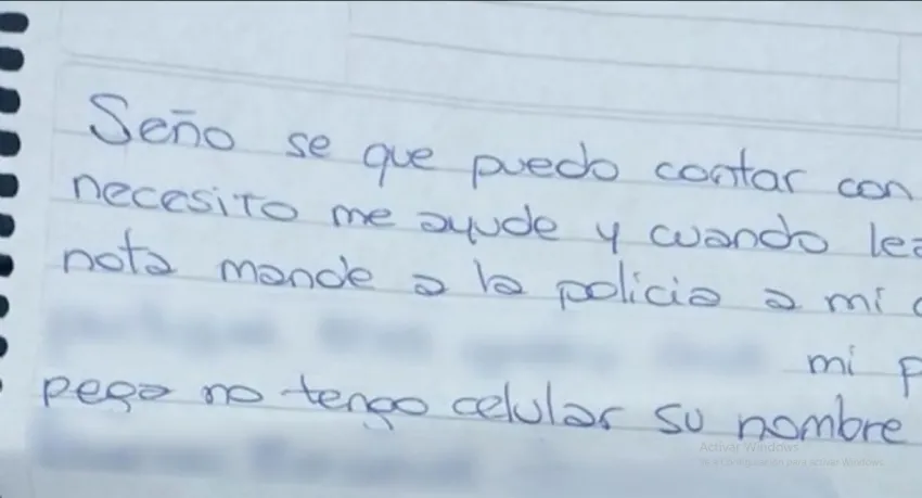"Seño sé que puedo contar con usted. Necesito que me ayude y cuando lea esta nota, por favor mande a la Policía a mi casa (dirección). Mi pareja me pega y no tengo celular, su nombre es...", decía la nota que envió la mamá y que afortunadamente leyó la docente.