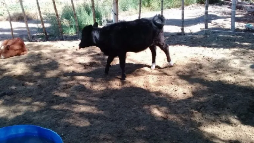 "Nosotros tenemos 26 animales, 10 terneros y esta vaca la han elegido porque tiene un año con 4 meses. Es una Angus negra’, comento Anabel la encargadas del corral