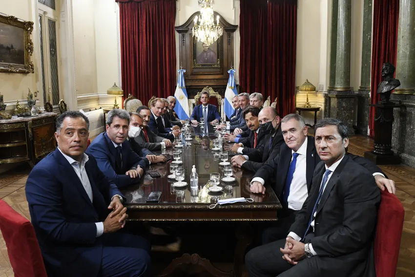 Massa recibió a los gobernadores. El encuentro se desarrolló en el marco del debate por el Acuerdo con el FMI.Sergio Massa recibió en el Salón de Honor al jefe de Gabinete de Ministros, Juan Manzur, acompañado por los gobernadores de La Rioja, Ricardo Quintela; Catamarca, Raúl Jalil; Tucumán, Osvaldo Jaldo; Salta, Gustavo Sáenz; La Pampa, Sergio Ziliotto; Santa Fe, Omar Perotti; San Juan, Sergio Uñac; Entre Ríos, Gustavo Bordet; Misiones, Oscar Herrera Ahuad; Chubut, Mariano Arcioni; Jujuy, Gerardo Morales; Neuquén, Omar Gutiérrez; y los vicegobernadores de Santiago del Estero, Carlos Silva Neder; y Santa Cruz, Eugenio Quiroga.