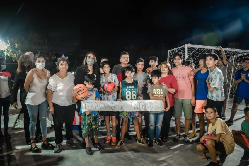 Caucete distinguió a sus mujeres e inauguró un playón deportivo. La actividad del Municipio se desarrolló en el Barrio Juan Jufré.