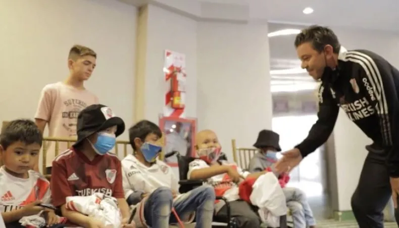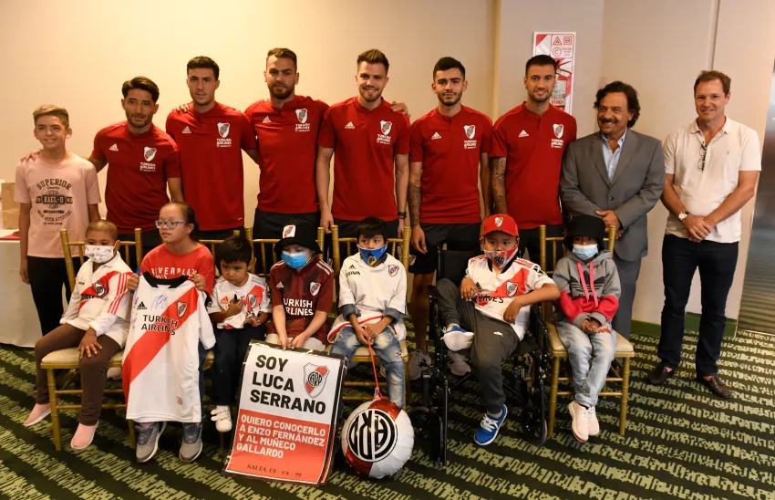 Se pusieron en contacto con la gente y en la mañana de hoy Marcelo Gallardo se hizo presente en el Hall del Hotel junto con los referentes del plantel para ver a Luca y a otros chicos que son pacientes oncólogicos.