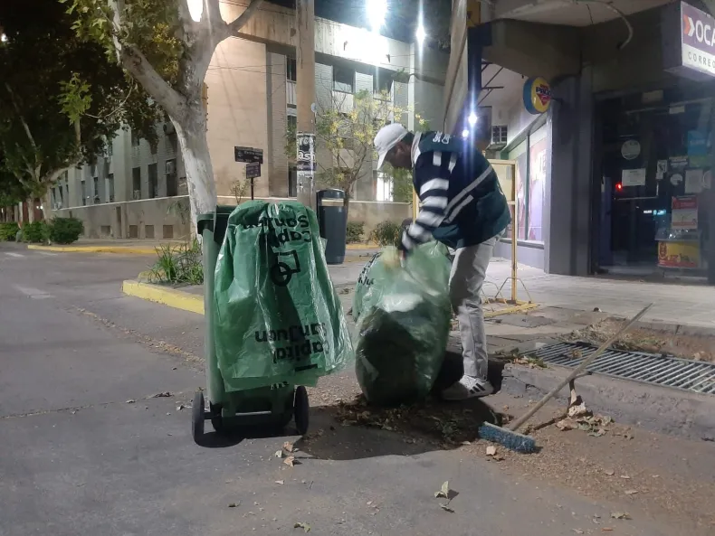 Durante la noche las brigadas de microcentro y nocturnas continuaron las tareas de limpieza en calles Mitre, avenida Central, Rivadavia y Laprida desde Avenida Rioja hasta Sarmiento. También en Avenida Rioja y calle Mendoza de Libertador a Córdoba y Urquiza desde Libertador a 25 de Mayo.