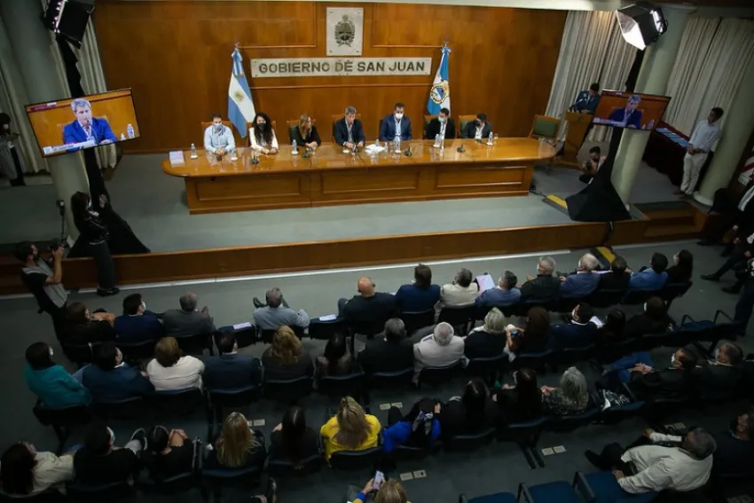 Agregó: "En La Bebida vimos las casas que no estaban porque se las llevó el terremoto y que fueron un compromiso del presidente y del gobernador. estan allí y uno las puede ver, tocar y palpar", en referencia a las que se cosntruyeron con fondos nacionales que anunció Alberto Fernández al día siguiente del terremoto de enero de 2021.