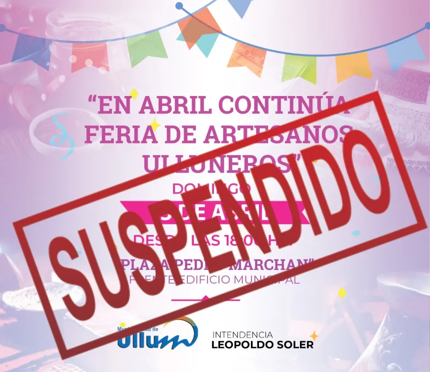 La Subsecretaría de Cultura Municipal, informa a la comunidad que ha decidido suspender la Feria de Artesanos, prevista para este domingo 3 de abril a las 18hs debido a fuertes ráfagas de viento.
