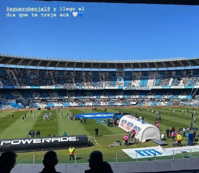Las imágenes se viralizaron a través de las historias de Instagram de un amigo de Benja. La cuenta subió dos historias: en una de ellas se puede observar el campo de juego junto a la frase: "@aguerobenja19 y llegó el día que te traje acá'" acompañada de dos corazones con los colores de la Academia. La otra foto es una selfie de ambos ubicados en la platea.