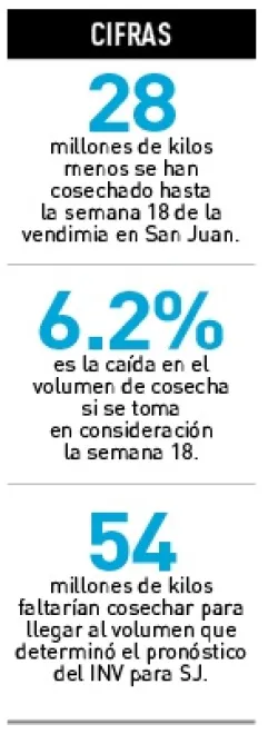 Los números muestran que si se toma en consideración el pronóstico de cosecha del INV para el 2022 en San Juan de 480 millones de kilos, para llegar a este volumen faltan 54 millones de kilos.