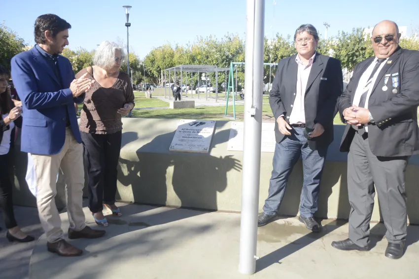 Bajo el lema Malvinas nos Une", miembros del CEAS (Centro de Ex Combatientes del Atlántico Sur) y FACAMA (Familiares Combatientes de Malvinas Argentinas), el intendente de la Municipalidad de la Capital, Emilio Baistrocchi, el presidente de la Unión Vecinal del barrio FUVA, Aldo Ante y vecinos del barrio, participaron del descubrimiento de una placa recordatoria al cumplirse 40 años de la Guerra de Malvinas.