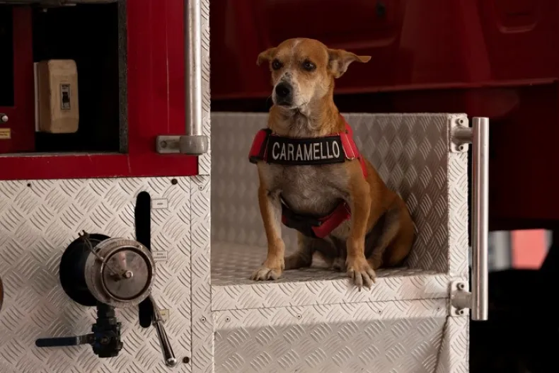 Caramello, nombre que recibió por el color de su pelaje, ha estado viviendo en el cuartel de bomberos que lo encontró herido en el emblemático Pan de Azúcar hace casi un año. Durante ese tiempo, el perro de 11 años ha acumulado unos 27.000 seguidores.