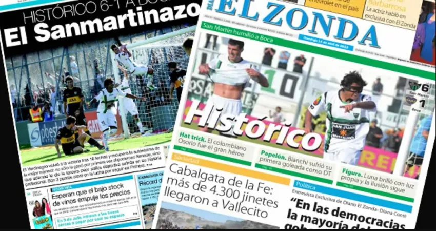 La goleada 6 a 1 estuvo en la tapa de todos los diarios de la Argentina y también llegó al ámbito internacional, siendo San Martín y San Juan la capital de la gran frustración de Boca.