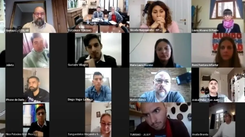 En la reunión virtual estuvieron Pablo de Luca, presidente de CCGLAR, Gustavo Noguera, el secretario general de dicho organismo, Sebastián Giobellina el nuevo presidente del CFT, entre demás autoridades. Representando a San Juan, disertó Aníbal Peña el director del Centro Cultural Conte Grand.
