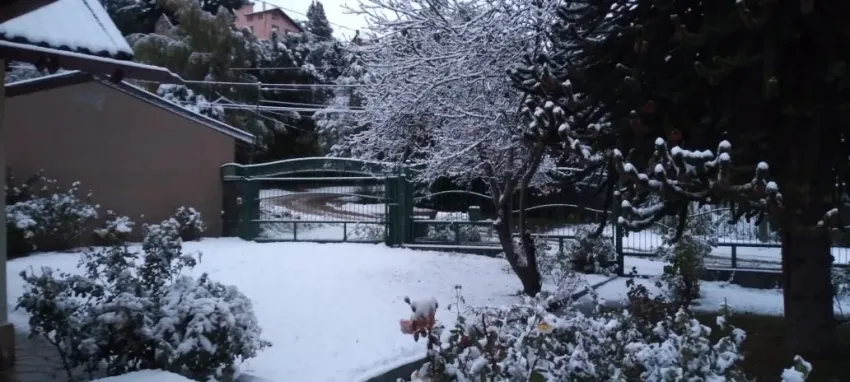 El jardín de la familia Penissi está blanco desde hace un par de días y hoy la acumulación fue mayor.