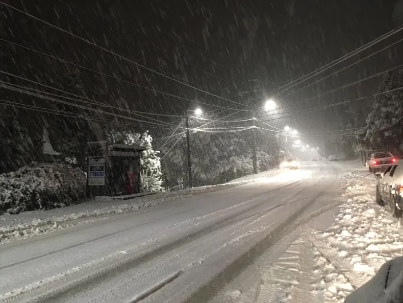 "La nevada abarcó toda la ciudad y desde que comienza la nevada, hasta por lo menos dos horas posteriores, no se puede resolver la circulación. Se recomienda tener las cubiertas adecuadas o cadenas o de lo contrario no salir con los vehículos. Mis nietos disfrutan y juegan con la nieve cuando para" cuenta Hugo desde Bariloche