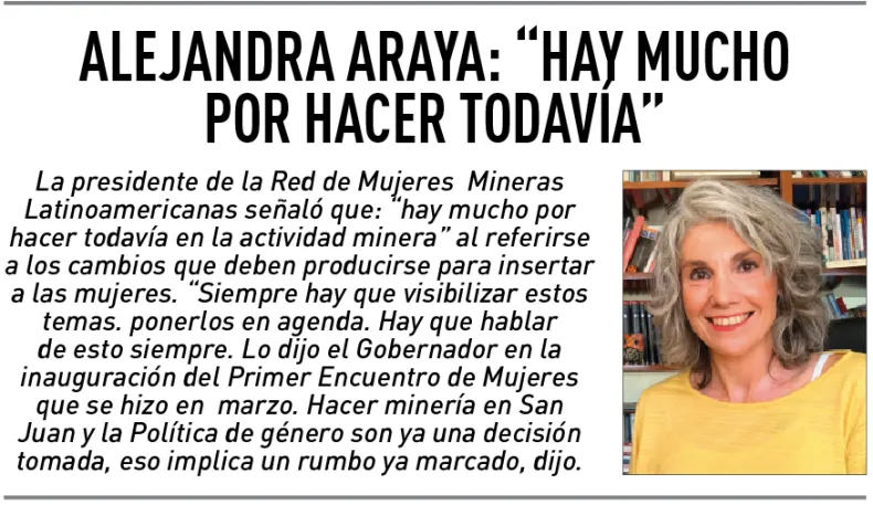 En la provincia, Alejandra Araya y Silvana Fontiveros, se pusieron al frente de la Red de Mujeres Mineras Latinoamericanas, como presidenta y secretaria general a cargo de Política y Género, respectivamente, para trabajar junto a un gran equipo y lograr aquella premisa.