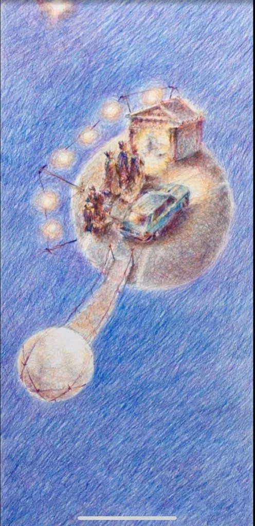 Según el texto curatorial de la Lic. Jamile Apara, directora de Artify, Marcelo Uliarte propone un viaje imaginario por planetas cargados de sensaciones y emociones en donde es posible retrotraerse a esa edad en la que solo hacía falta soñarlo para que se materializara.