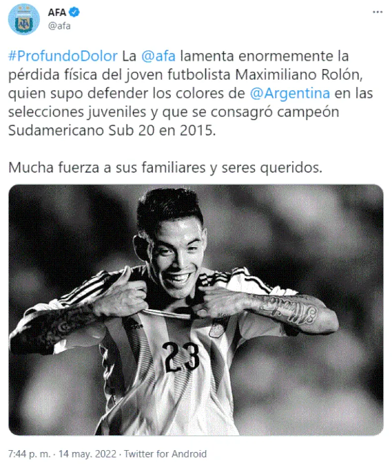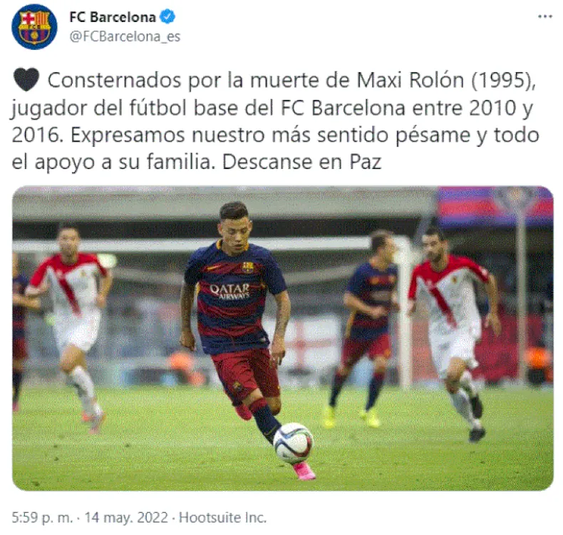 El exfutbolista del Barcelona y la Selección argentina Maximiliano Rolón murió este sábado a los 27 años en un accidente de tránsito a la altura de la localidad santafesina de Pujato, cuando viajaba hacia Rosario. En el choque también falleció su hermano gemelo, Ariel.