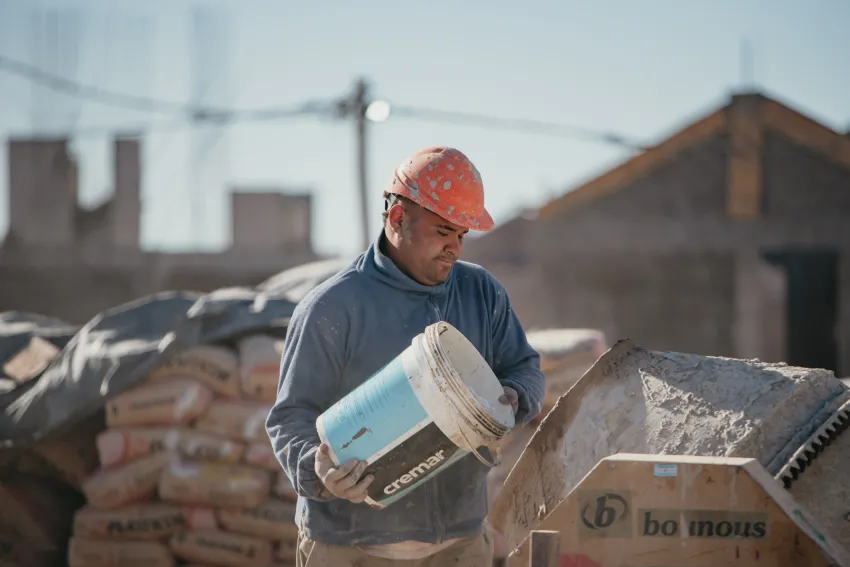 Las viviendas poseen estructura sismorresistente, con mampostería de ladrillos macizo y tabiques, revoque interior enlucido a la cal y exterior revoque grueso, salpicado planchado. Losa de hormigón armado en dormitorios, pasillo, baño y local de vivienda productiva. Techo chapa autoportante en cocina - comedor, conformada por panel con núcleo aislante de poliuretano inyectado, y accesorios necesarios para impedir filtraciones (zinguería, etc).