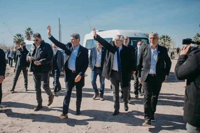Sergio Uñac y Alberto Fernández visitaron junto a sus respectivas comitivas el barrio Las Pampas, en el departamento Pocito, como parte de la agenda que desplegarán los funcionarios nacionales en San Juan.