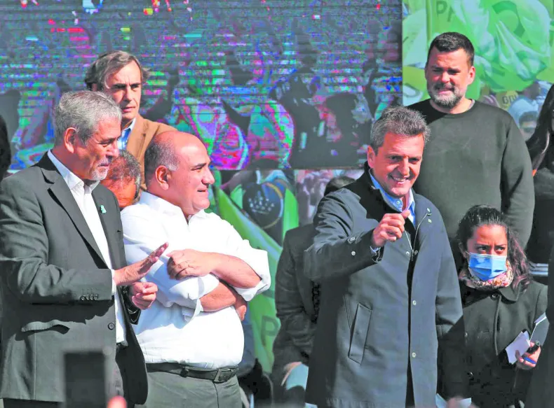 También estuvieron Sergio Massa, presidente de la Cámara de Diputados y el gobernador de San Juan Sergio Uñac, quien fue recibido entre abrazos y besos por el titular de la UOCRA.