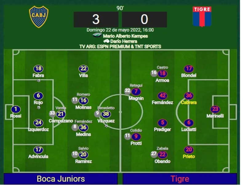Tigre reaccionó en la segunda mitad: salió a llevarse por delante a Boca y tuvo chances claras de gol, pero Mateo Retegui -cuyo pase pertenece a la institución de la Ribera- falló en las tres oportunidades que tuvo.
