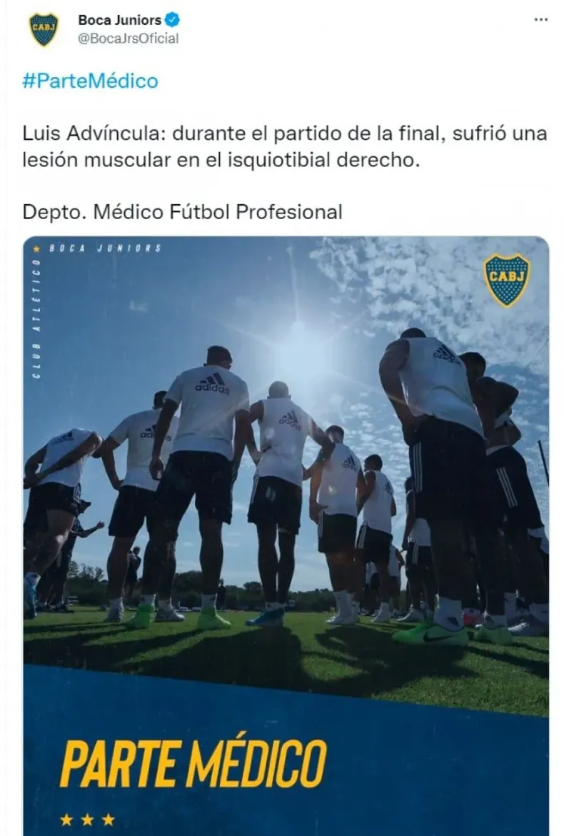 Luis Advíncula protagonizó la mala noticia en Boca de cara al duelo crucial ante Deportivo Cali para jugarse la clasificación a los octavos de final de la Copa Libertadores, pero también preocupa a la Selección de Perú, a tres semanas del repechaje para el Mundial de Qatar 2022.