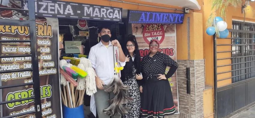 En el departamento de Pocito, una despensa recibió a sus clientes con chocolate y vestidos de época.