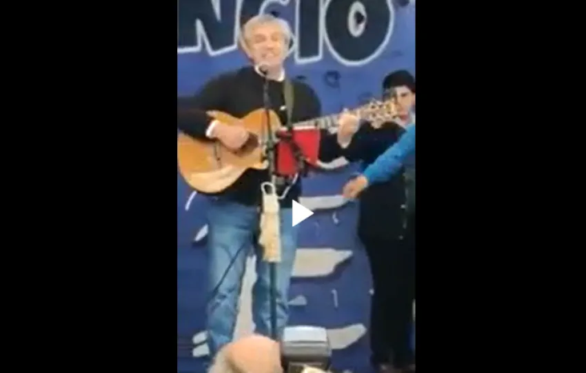 Al finalizar el encuentro, con guitarra, micrófono y parlantes, Alberto Fernández hizo un cover de "Solo se trata de vivir", de Litto Nebbia, su amigo y uno de los artistas que más admira.