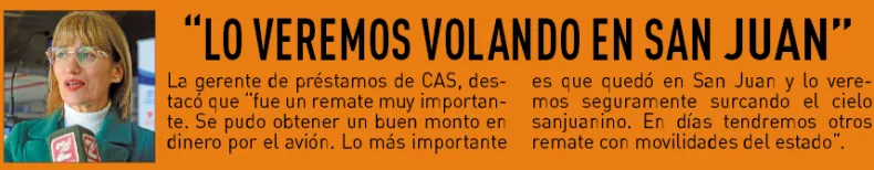 Con un dejo de tristeza y nostalgia, el personal de la Dirección Provincial de Aeronáutica, observaban y escuchaban como el avión Cessna U-206 A, al que tantas veces habían reparado, ya que cumplía trabajo con fumigación y hasta transportaba alimentos y pasto a la alta cordillera. Fue el último día en al hangar Juan José Licciardi de la provincia, ya que se subastó en un remate preparado por la Caja de Acción Social representado por la gerente de préstamos Andrea Granados, la presidente de la Caja de Acción Social Mábel López y el Director de Provincial de Aeronáutica Mario Aubone, entre otras autoridades.