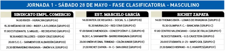 Por su parte, los varones tendrán 18 juegos en el SEC, Pocito y en Richet, arrancando desde las 14.00.