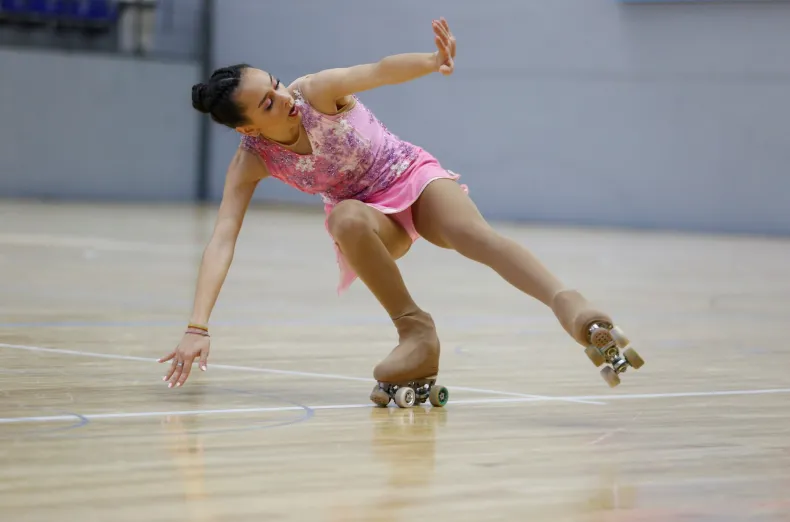 El espectacular piso del Gremial permitió que los patinadores se lucieran ante la presencia de un buen marco de público que se dio cita.