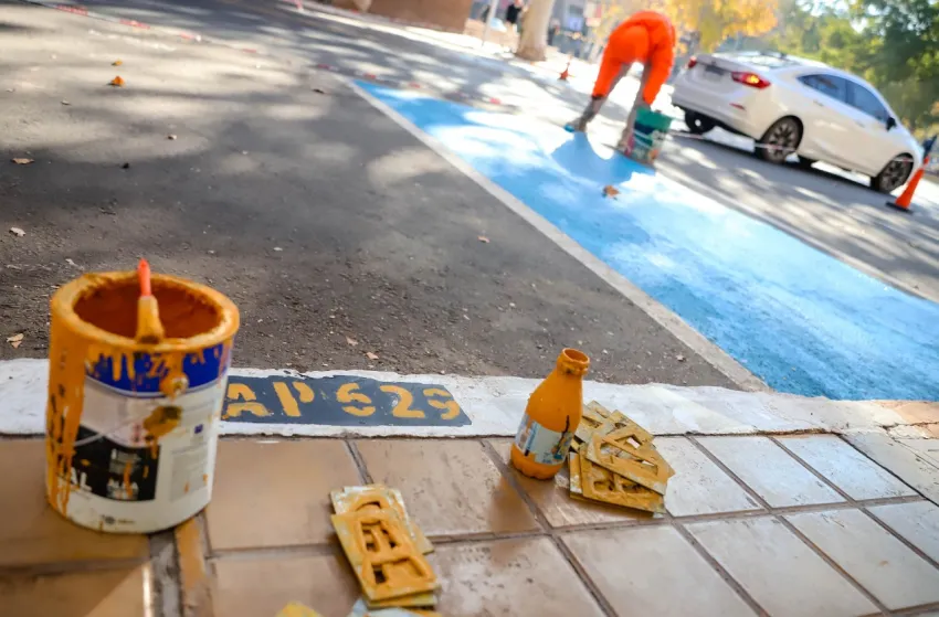 El miércoles se comenzó con comenzó con el trabajo de pintura en boxes de Avenida Central y codificación de los mismos, en cordón y en el extremo de cada box en el tramo de Mendoza a España.