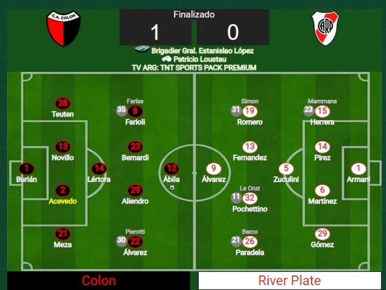 Colón ganó 1 a 0 sobre River con un gol que fue convalidado por el VAR. Ramón Ávila parecía estar en posición adelantada pero el árbitro Loustau lo convalidó.