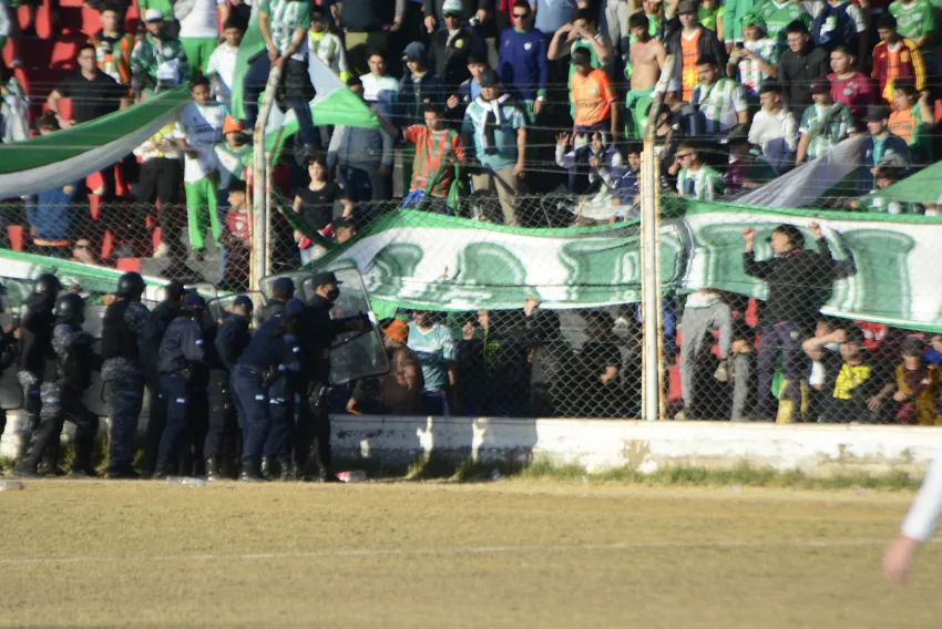 Como el equipo en cancha no mostraba nada de motivación que permita alentar, los hinchas estallaron y a los 32 minutos se hicieron notar cuando se subieron al alambrado y eso hizo que el asistente llamará al árbitro Maximiliano Macheroni y se detuviera el partido.