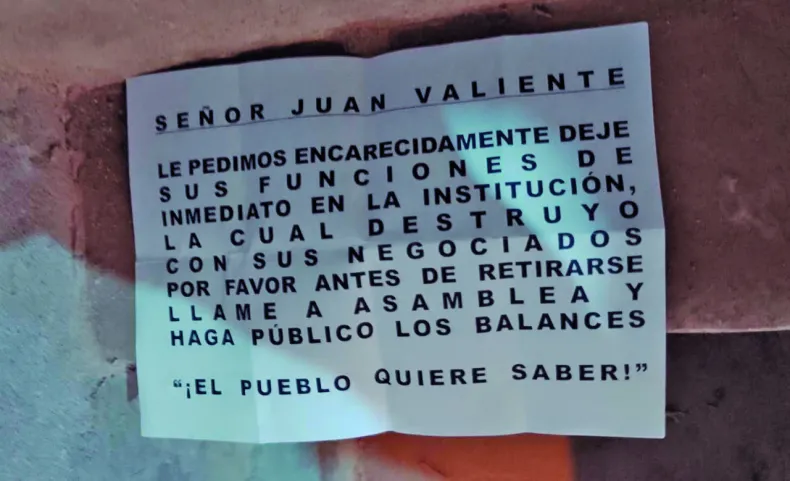 El presidente fue el mas criticado en la jornada de ayer y no solo a través de los cánticos sino que aparecieron panfletos pegados en las paredes de los baños de platea y también en la popular. El clima por Desamparados no es el mejor y todos quieren Asamblea y un cambio urgente.