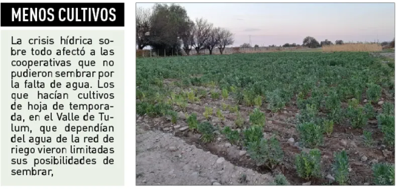 Caballero es productor jachallero y consideró que la crisis hídrica en su departamento no es tan complicada como en el Valle de Tulum. Lo que lleva a que los campos estén en estos tiempos cultivados en una mínima expresión.