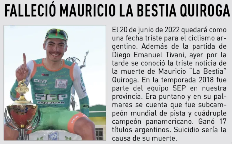 La partida de Diego Emanuel Tivani generó muchas muestras expresiones de tristeza en las redes sociales y desde todos los ámbitos pero en especial del ciclismo.