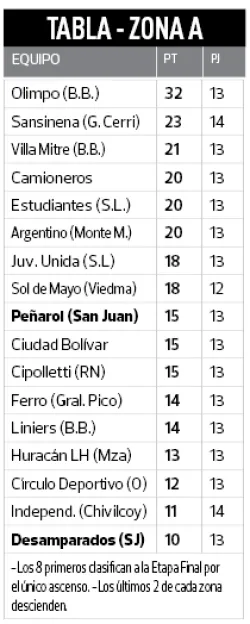 Peñarol viene levantando y le ha sacado cinco puntos a Desamparados, que es el último de la tabla. Todavía no le alcanza para meterse entre los ocho de arriba, que serán los que consigan el boleto a la siguiente instancia. Pero está cerca. Hoy lo separan tres puntos con los octavos, que son Sol de Mayo y Juventud de San Luis.