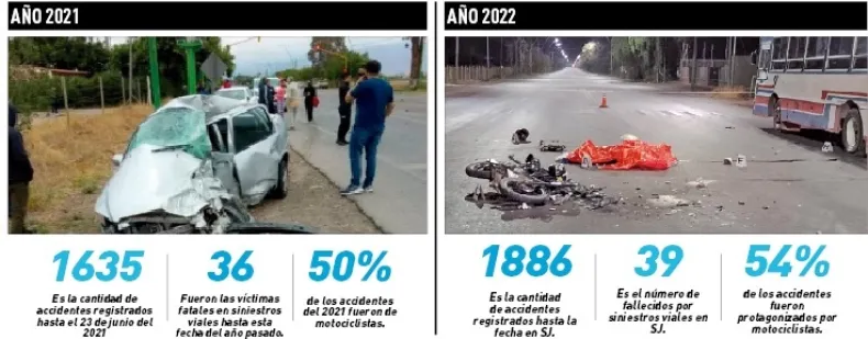 De acuerdo a los datos registrados por la Policía de SJ, en la provincia hay más accidentes de tránsito y fallecidos que en 2021.