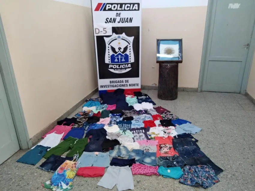 Esclarecen el robo que sufrió una comerciante de Albardón. Los investigadores policiales recuperaron una gran cantidad de prendas de vestir nuevas.