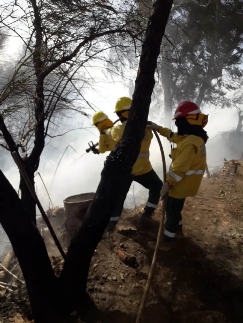 Cuando el viento zonda azotaba con fuerza, un incendio se desató en un predio de Alto de Sierra y amenazó a las familias que viven en la zona. El hecho ocurrió en calle Proyectada entre Gutierrez y Libertador, en el Loteo Albarracín, Santa Lucía.