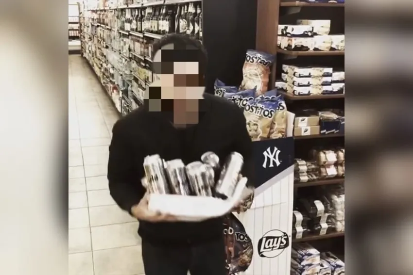 Lo atraparon con las manos en la masa, o mejor dicho en las latas de cerveza.