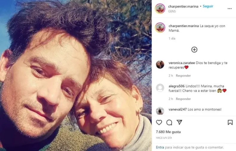 Marina Charpentier, la mamá de Chano, compartió la postal en su cuenta de Instagram. "La saqué yo con mamá", aclaró el propio músico en el eqígrafe del posteo que recibió miles de "me gusta" y decenas de comentarios con los mejores deseos en su camino de rehabilitación.