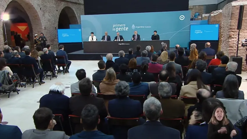 Acompañado por el jefe de Gabinete, Juan Manzur, y el ministro de Ciencia y Tecnología, el Presidente encabezó el acto de firma de las cartas de intención para el comienzo de 22 obras de infraestructura científica y tecnológica, con una inversión total de casi 9.900 millones de pesos, en el marco del programa Construir Ciencia.