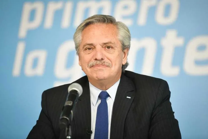 "Vemos una pelea por la puja distributiva, cómo se distribuye lo que Argentina gana; los que trabajan tienen los mismos derechos que aquellos que invierten y producen", aseguró el Jefe de Estado. Detrás suyo se ubicaron, entre otros, el jefe de Gabinete, Juan Manzur; el canciller Santiago Cafiero; y los ministros Daniel Scioli (Producción), Carla Vizzoti (Salud), Juan Zabaleta (Desarrollo Social). También la titular del ANSES, Fernanda Raverta.